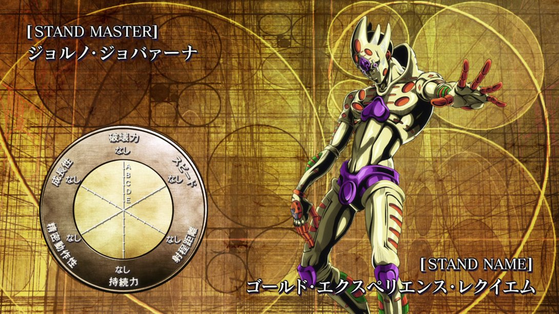 a few words about jojo's golden experience i ccracked it. basically golden experience is not "time reverse" power and not no you power it is else. its not withotu a weakness, but its a theory either way since im not author. golden experience original ability is giving life to things, but it cant revive humans who already died because their soul is gone. The soul motives is something that happens often in the series. There are few hints that support this theory. The surgeon table, Diavolo's second death. In this episode, Diavolo is being cut by a surgeon, however he is alive but surgeon does not notice and continues making autopsy over corpse. Why? It hints on Golden Experience's ability which is not just a glitch in matrix. If Golden Experience, could just reverse time then there is no reason why it would let Diavolo escape, it should havej ust reversed it back to hit it from different angle, no? The reason isn't that it wanted to or accidental. You see, Golden Experience Requiem's Ability is an upgrade of its previous ability, it is to give birth to truth, in other words, it "births" new fate/truth that its user wants. Though very powerful, it has major weakness, it doesn't edit it. It only creates a new one, while priotizing new truth over the previous, it has no ability to cchange or delete the previosu truth as well. The reason why Diavolo remains alive has to do with this ability. Diavolo is supposed to be dead and killed by Golden Experience but the real truth is exactly as it said to Diavolo, "the things you see with your epitaph is truth", in other words the truth that Diavolo must kill Giorno by thrusting his fist in him, is also a truth that exists. So, like shrodinger cat event, alive and dead, Diavolo is dead from the new truth perspetive, and still alive because he must kill Giorno in the future/past truth. We know that in jojoverse fate is sealed and doesn't really change, this is mentioned many times including describing joestar tragic fate to fight against Dio + jotaro/jolyne both dying. The fate is something that characters have to accept, especially fate of death. So I think that Giorno's fate is also sealed even with his stand power which is why Diavolo remains alive. However, his stand allows him to live truth that he wants to live. While also postponing future truth.