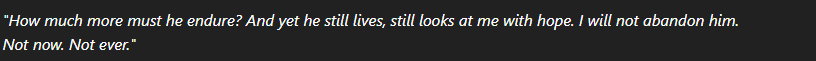Then—after a pause—her tone softened again. “But then I return here. To you. And for a moment, I don’t need to be a tyrant or a king.”